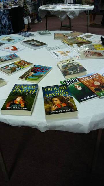 We were grouped in sections (as close to genres as possible. In my case, as a flash fiction writer, I was in with general fiction. Richard Hardie was in the Young Adult section). There was plenty of room for readers to wander along and have a good look at our stands and see what was on the browsing tables.