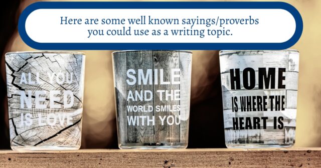 One is to go back to the book of proverbs/sayings I referred to in a recent post and use those proverbs and sayings as themes to write to. There will always be something you can do with “a stitch in time saves nine” for example (and it lends itself to fiction too).
