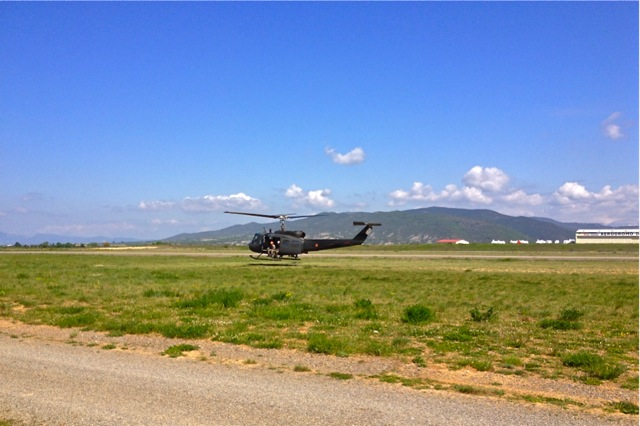 The Spanish army brought their helicopter for the troops to practise abseiling down from 50 feet up. They all managed it successfully and the ambulance on standby was not required.