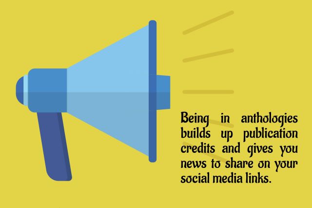 Being published in anthologies is a great way of having something to put on your writing CV when approaching publishers/agents with other work. You can build up a good track record here. As an aside to this, being published in these gives you something to share on your social media, author newsletter, and website. People simply do take you more seriously as a writer if they can see you do have a track record. As another aside, at book events, as well as selling my own books, I can sell anthologies where I have work. They look good on a book table!