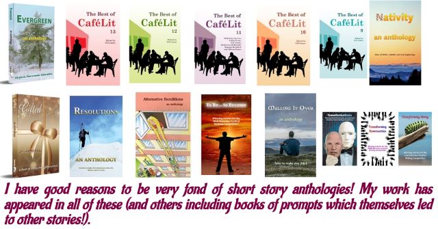 Anthologies are superb ways to support the independent presses which, in turn, give voice to more authors. You never know when you might be glad of that. I hadn’t anticipated it myself but am so glad this did come my way. It led on to other things, in my case discovering the wonderful world of flash fiction and going on to have my own books out there.